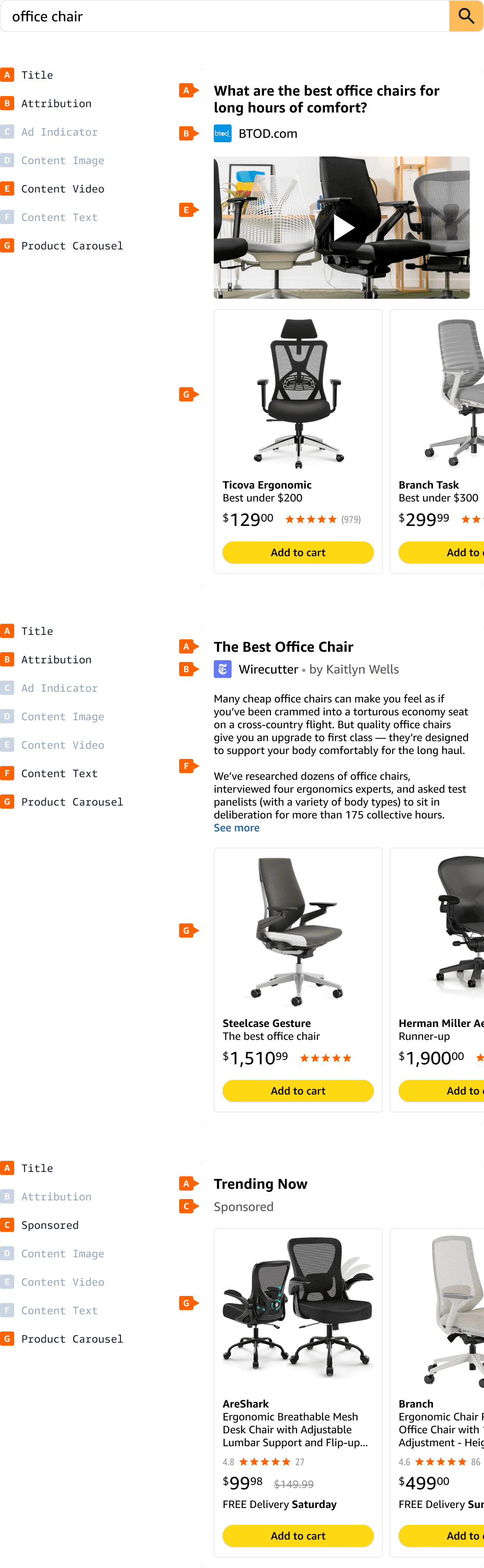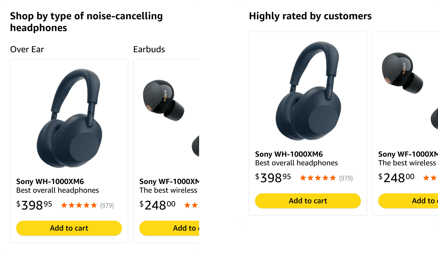 The ensured the experience was truly adaptive. For a broad research query (e.g. "best laptops"), the expert guide might rise to the top, whereas for a detailed search for a specific ASIN it would disappear completely to avoid obstructing the path to purchase. By letting user behavior dictate the architecture, I was able to ensure that the product recommendations were always present exactly where they added the most value, and never felt like an intrusion.