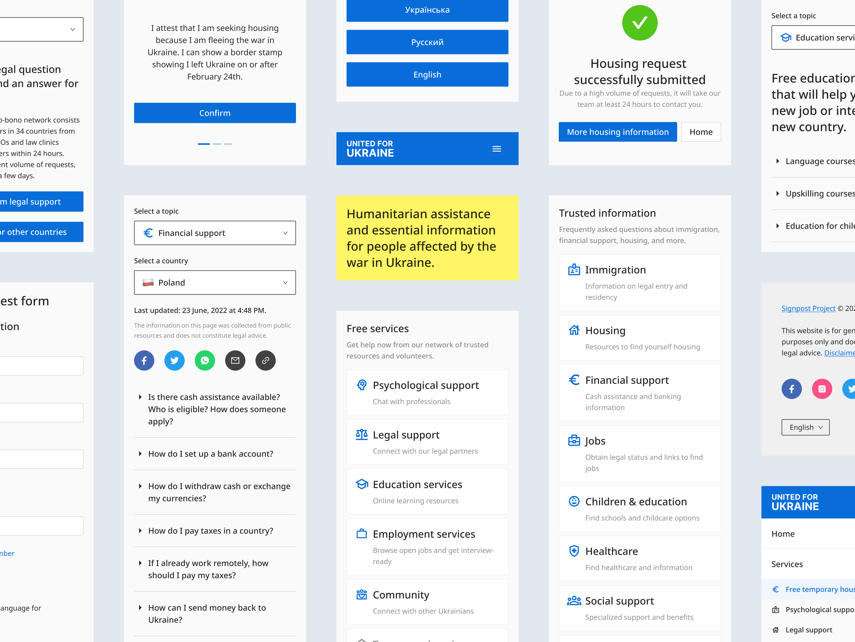 When I joined the project, the immediate challenge was the "fog of information." Essential details about housing, legal aid, and safety were scattered across disparate social media channels and siloed websites without any reliable way of knowing what could be trusted. Refugees were making life altering decisions while traumatized, disoriented, and often trying to gather information on-the-go while relying on older mobile devices with spotty 2G or 3G connections and limited data.
