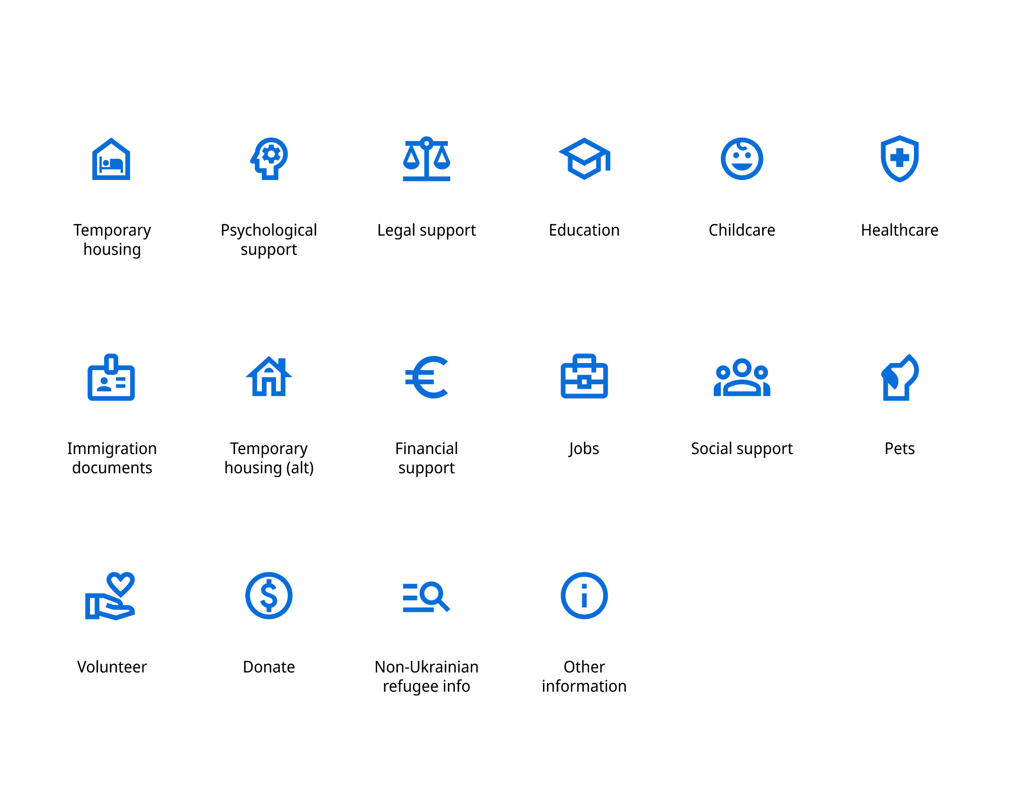 Our users spoke a combination of Ukrainian, Russian, and English with varying levels of proficiency in each, so I leaned on clear visual iconography as a core mechanism for communicating concepts.
